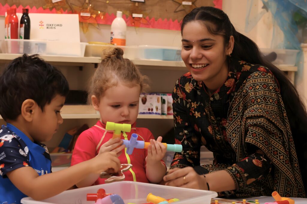 Oxford Kids offers two developmentally appropriate curriculum pathways across its schools. Two centres follow the International Early Years Curriculum (IEYC), while one offers a bespoke thematic curriculum. Both are play-based, inquiry-led, and designed to support holistic early learning.